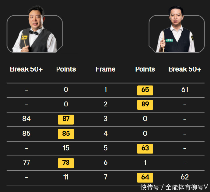 第五局,张安达送出单杆78而,78-40再胜一局,比分来到3-2并得回赛点,敌手被逼入绝境。第六局,莫得退路的琼斯伸开松弛反击,他打出单杆81分,81-0零封张安达,3-3拯救赛点,两边参加决胜局。