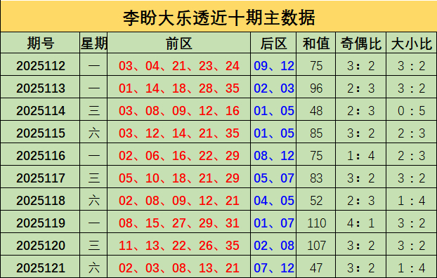122期李盼大乐透预测奖号:和值奇偶比分析