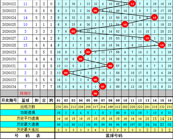 蓝球5码推选:03、06、10、12、16